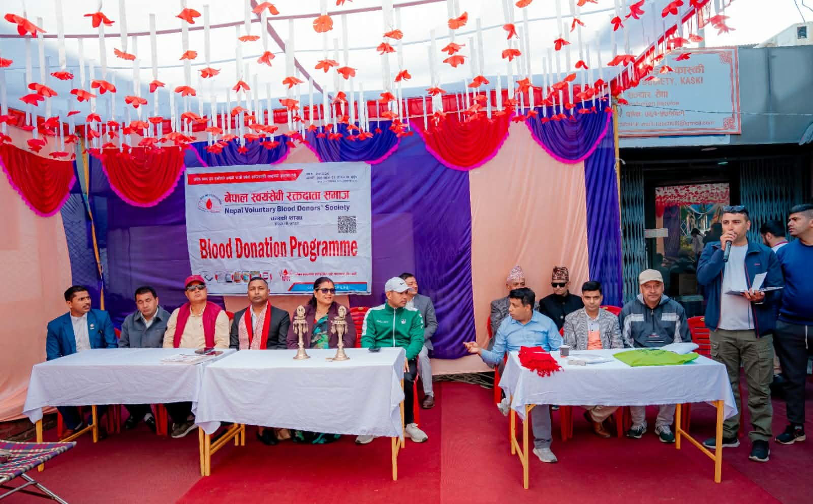 कार्यक्रममा नेपाल औषधि व्यवसायी महासंघका सचिव गोपाल अधिकारी, स्वयंसेवी रक्तदाता समाजका अध्यक्ष दीपेन्द्र अधिकारी लगायतले रक्तदानको महत्वका बारेमा बोलेका थिए । समाजका सदस्य हिरामणि भुसालले सञ्चालन गरेको कार्यक्रममा पोखराका पूर्व वडाध्यक्षहरु प्रकाश पौडेल, दर्शन लामा, राजकुमार गुरुङ लगायतको उपस्थिति रहेको थियो ।